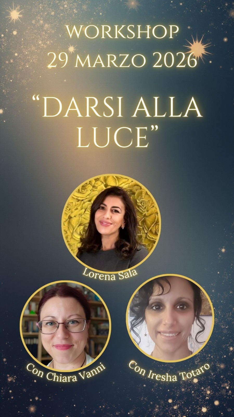 “Darsi alla luce” è un laboratorio esperienziale: un percorso simbolico e pratico per leggere le tue origini (prima della nascita e la nascita) e trasformarle in direzione, scelte e presenza.